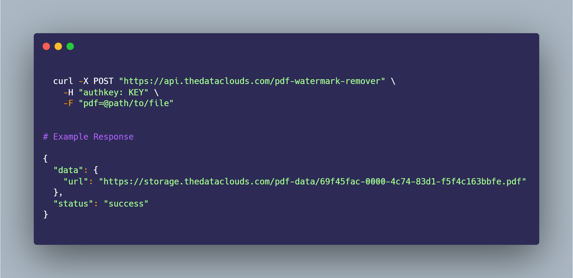 curl -X POST "https://api.thedataclouds.com/pdf-watermark-remover" \